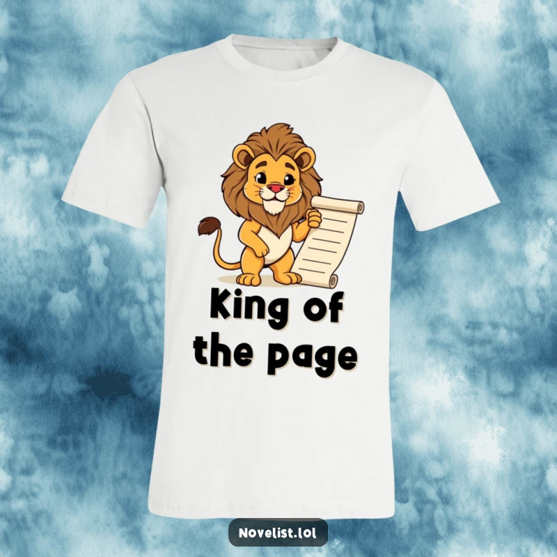 Lead the pack in style with this funny t-shirt featuring a proud lion striking a regal pose with a manuscript. Perfect for those who rule with humor!